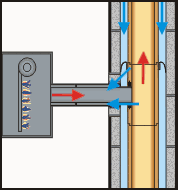 В системе BET-LAS возможно подключение до 10 котлов с закрытой камерой сгорания к одному дымоходу. Основой системы является керамическая глазурованная внутренняя труба, устойчивая к воздействию кислотных конденсатов. Пространство между ней и пустотелым блоком облицовки используется для поступления к газовому котлу воздуха для сгорания.